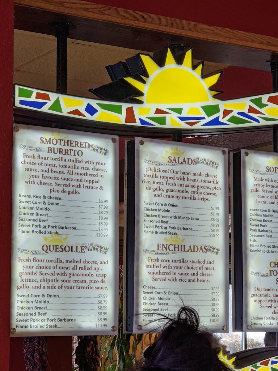 Fresh flour tortilla stuffed with our famous chicken molido, tomatillo rice, cheese, sauce, and beans. All smothered in your favorite sauce and topped with cheese. Served with lettuce & pico de gallo.