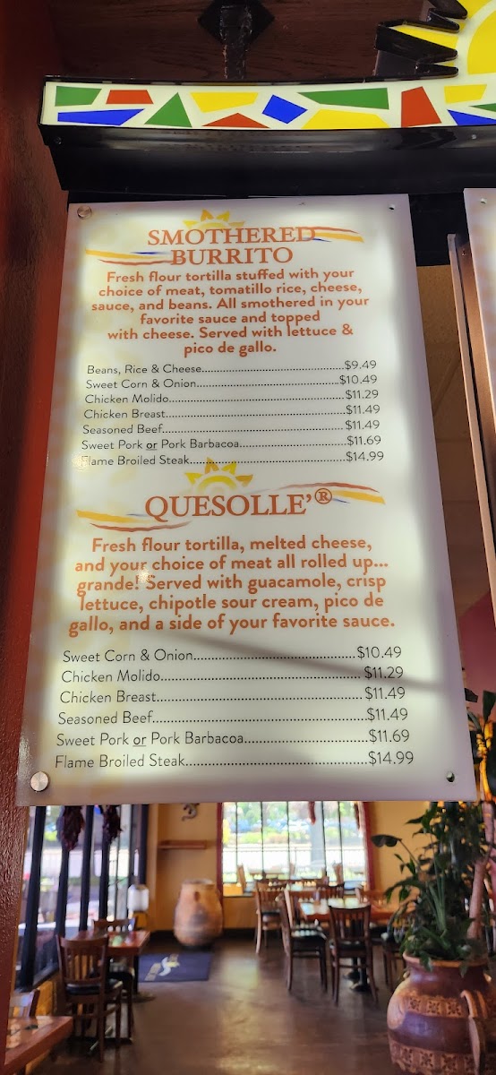 Fresh flour tortilla, melted cheese, and sweet corn onion all rolled up... grande! Served with guacamole, crisp lettuce, chipotle sour cream, pico de gallo, and a side of your favorite sauce.