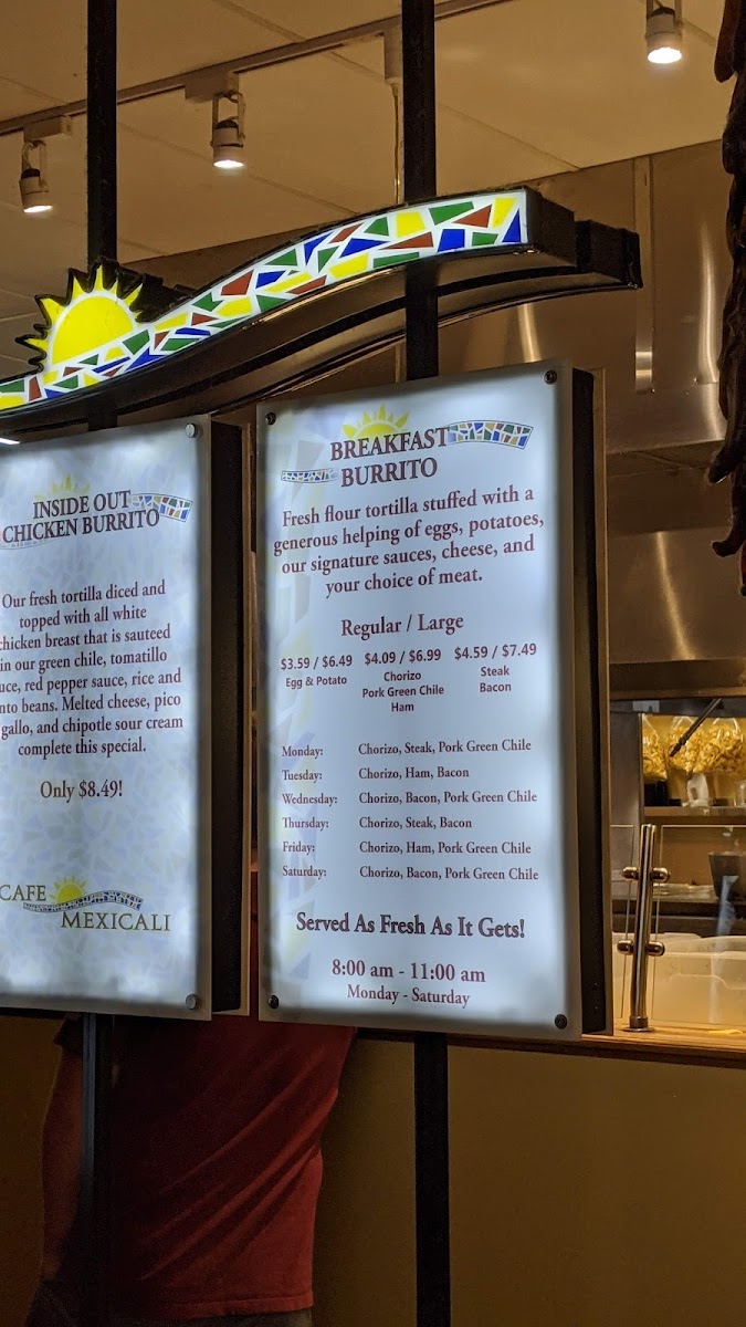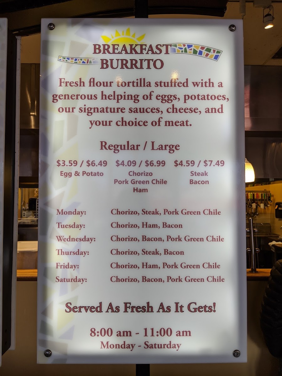 Fresh flour tortilla stuffed with your choice of meat, tomatillo rice, cheese, sauce, and beans. All smothered in your favorite sauce and topped with cheese. Served with lettuce & pico de gallo.